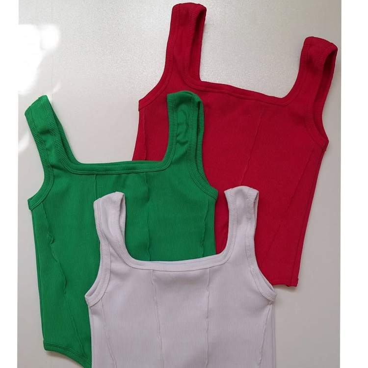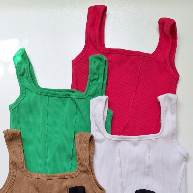 تاپ رگه دوزی یقه ی تاپ مربعی پایین تاپ به شکل هلال یا اریب دوخته شده روی تاپ رگه دوزی شده جنس :نخ پنبه کشی رنگ بندی: ۸ رنگ متنوع قد تاپ ۵۰