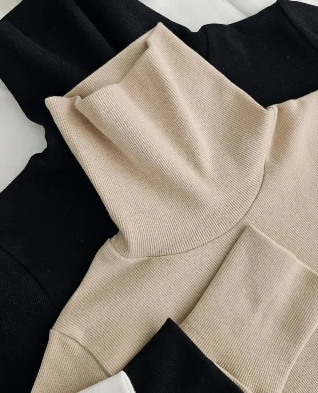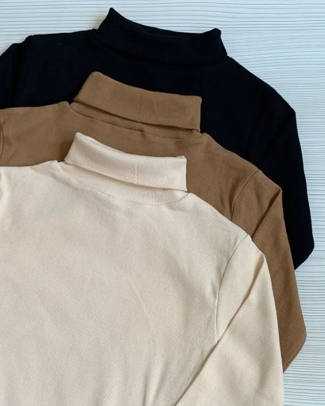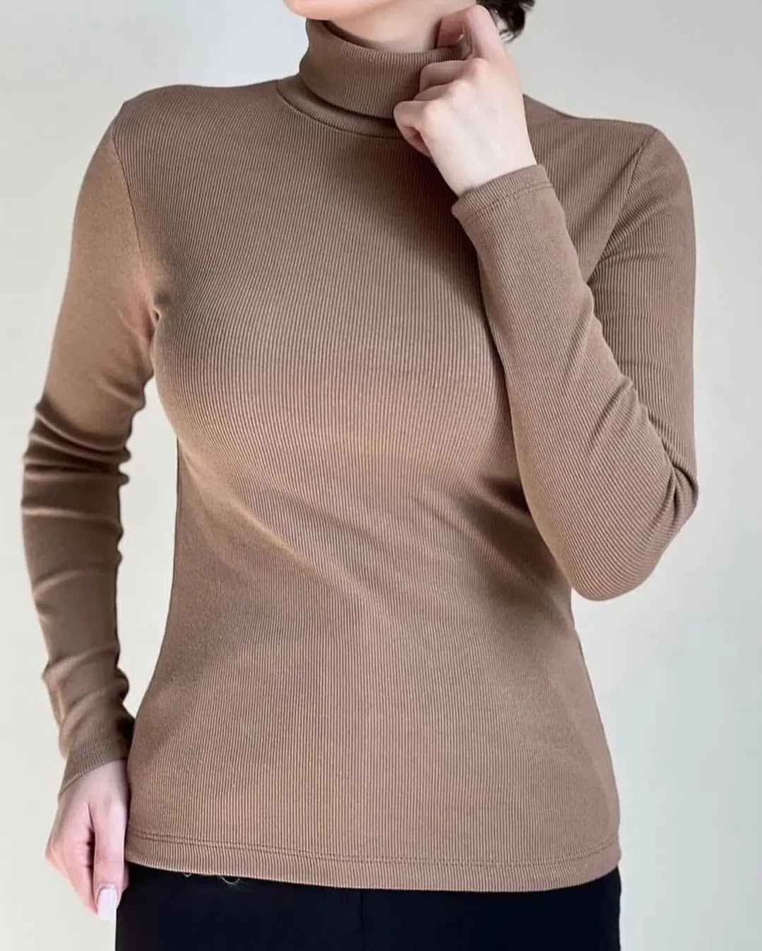 بلوز زنانه یقه اسکی آستین بلند کبریتی نخ پنبه