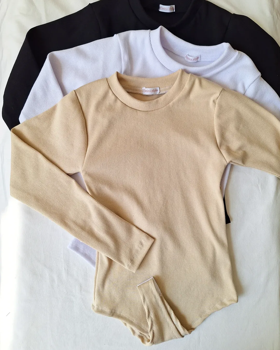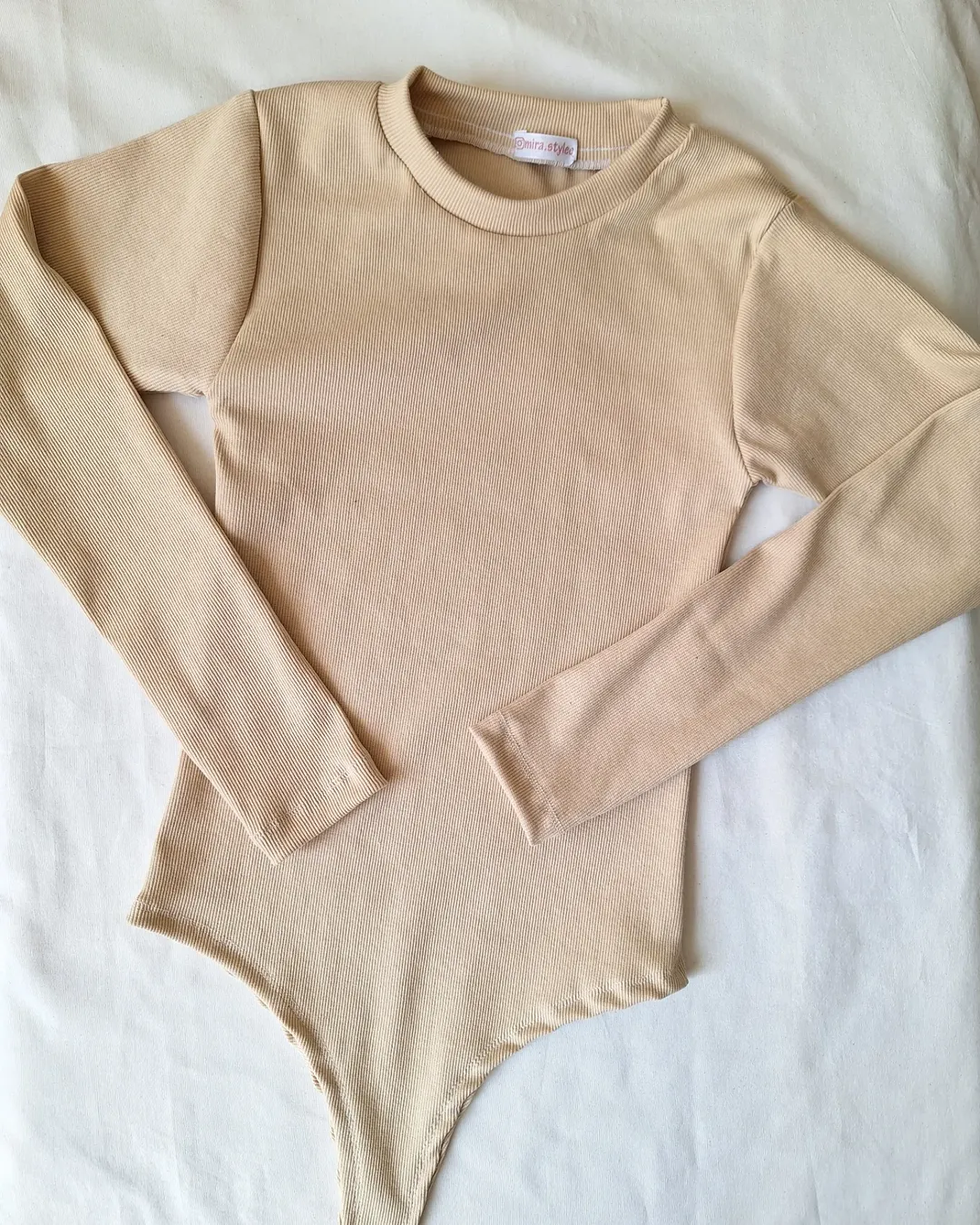 بادی بیسیک زنانه یقه گرد آستین بلند نخ پنبه کبریتی