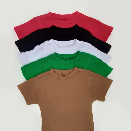 تیشرت زنانه یقه گرد آستین کوتاه کشی کبریتی