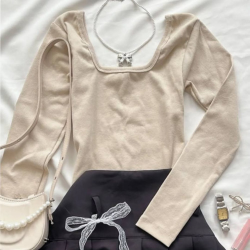 بلوز یقه مربعی زنانه آستین بلند کبریتی کشی